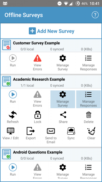 Get a license key to upgrade your OfflineSurveys app to use these PRO features: ✔ Remove "Sync Responses" limit (20 responses) ✔ Remove "Lock Survey" & "Lock App" limit (10 responses) Your license is automatically applied so you can use: - Unlimited devices - Unlimited surveys (All surveys loaded from your domain) - Unlimited responses |